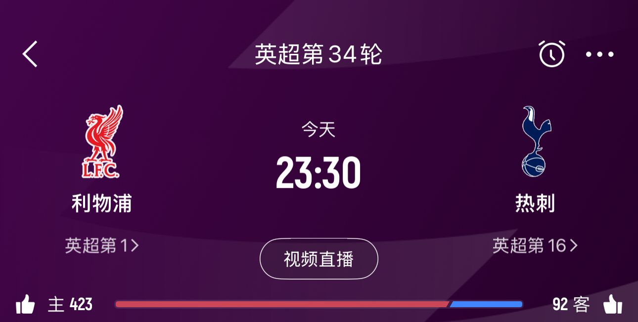 23:30 英超第34輪 利物浦vs熱刺